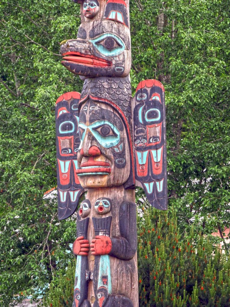 You’ll find 13 totems in the park, along with a clan house that held 30 to 50 family members. The totems all face out to sea as a display to those approaching, the carvings telling of the village’s history and wealth. A self-guided tour is well worth the effort.