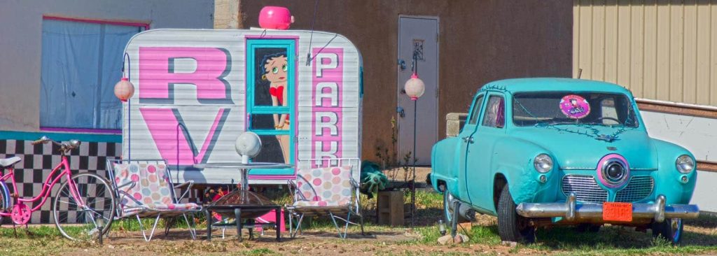 The Buckaroo Motel down the road has a great sign with a cowboy on a bucking bronco, but the neon at night declared it to be “The Buckaroo Mo.” Don’t miss Safari Motel with its camel sign and “Squeaky Clean” rooms, or if you want to trade your RV in for a night’s stay in this little beauty with Betty Boop, here’s your chance!