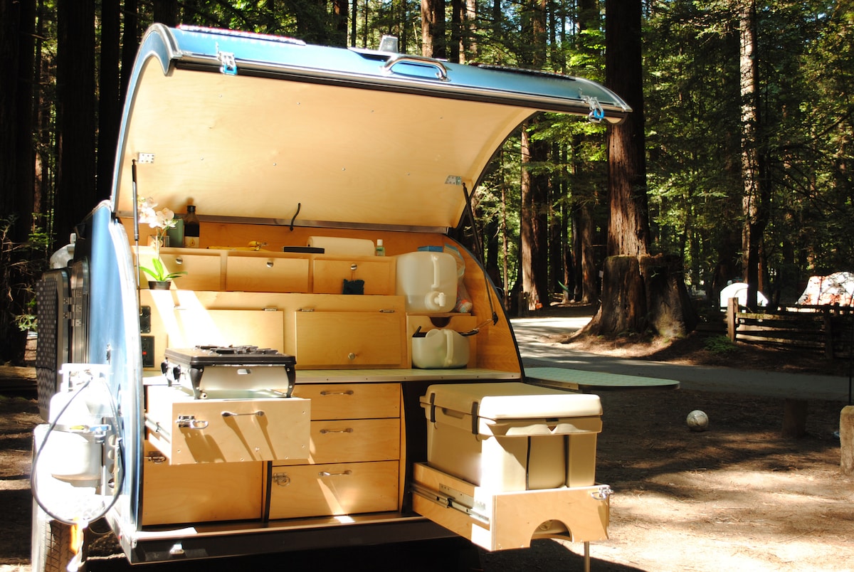 Consider adding some totes or dividers into your storage spaces so you can truly make the most of it. Have a place that everything goes. That way even if you don’t stay organized while camping, when you go to pack up and head home or to the next campground, you’ll know that everything fits and where.