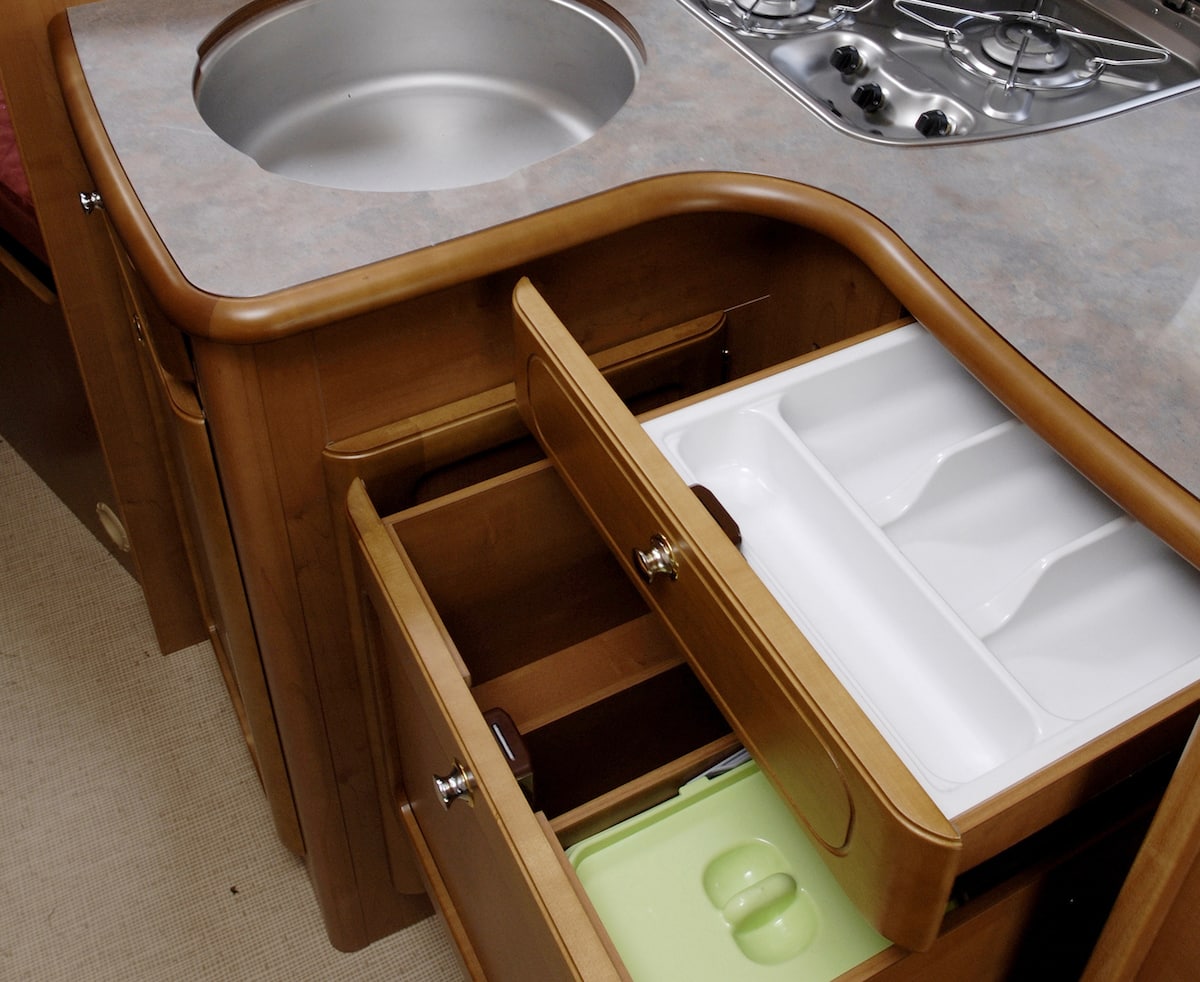 If you realize help would be nice in developing an organizational plan, no worries! We all need help from time to time, which is exactly why the Camping World Design Center exists. With over 46 locations nationwide, Camping World Design Centers help RVers plan and create custom interior design projects, including organizing their belongings, that are unique to their RV. Explore what options might be perfect for your interior setup.